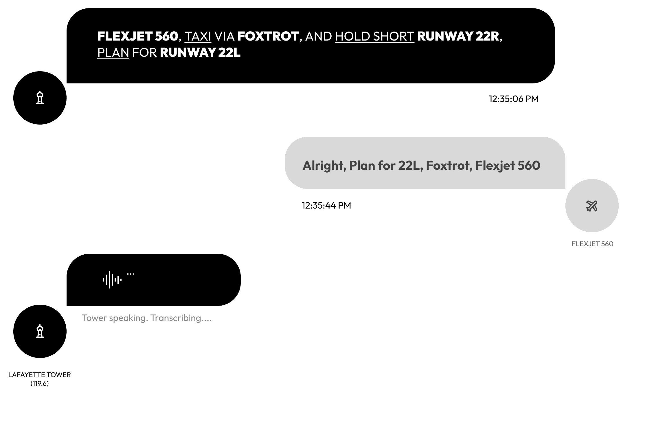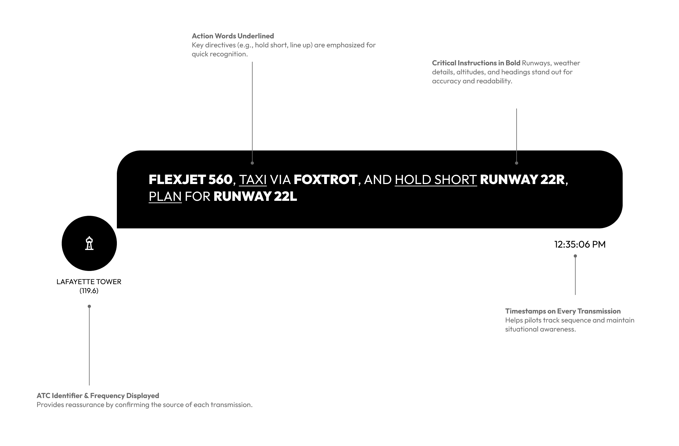 🔔 Safety Alerts: If transcription detects “immediate” or “go around,” highlight in red.