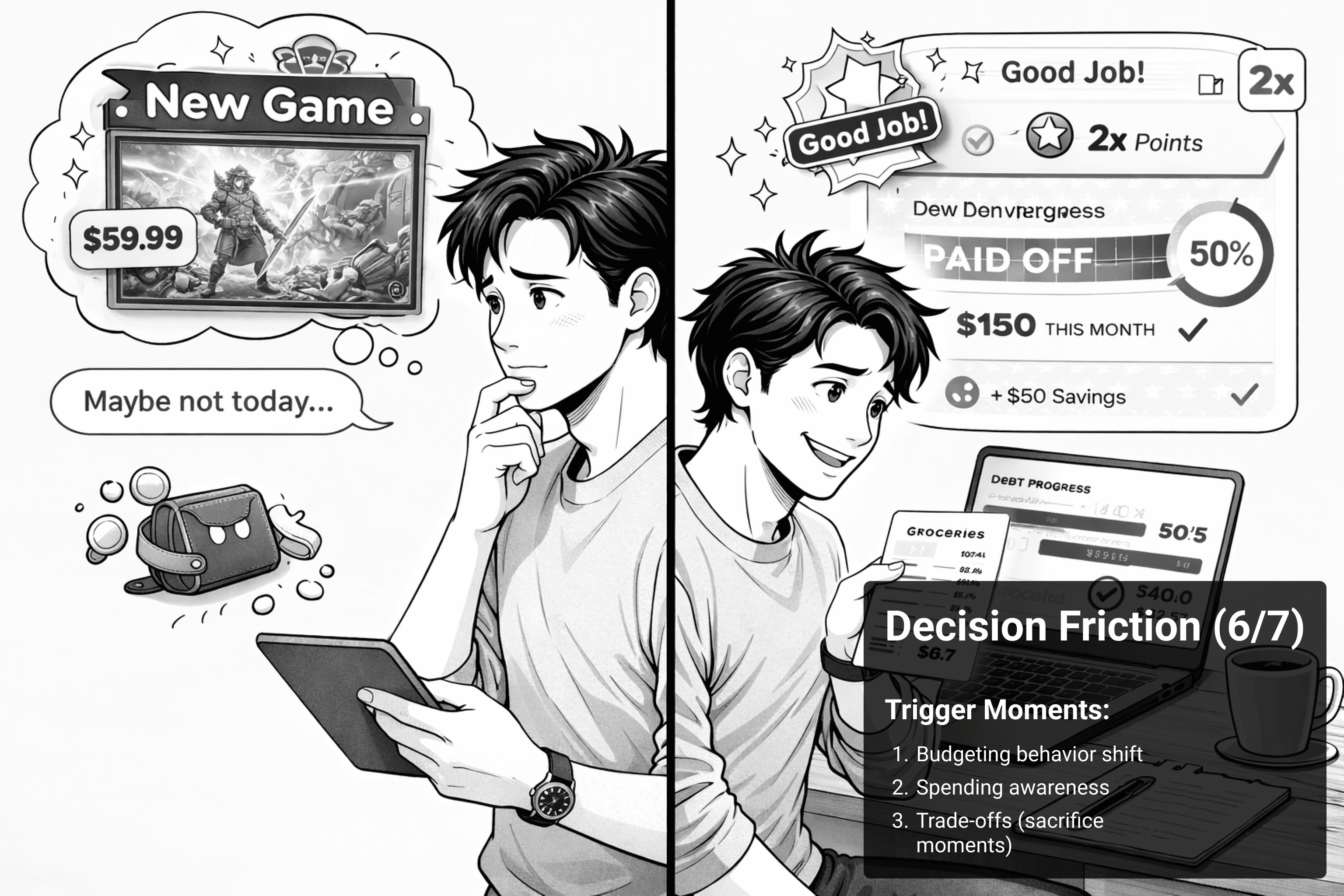 The new user journey: The walk of shame → The walk of ‘debt free’