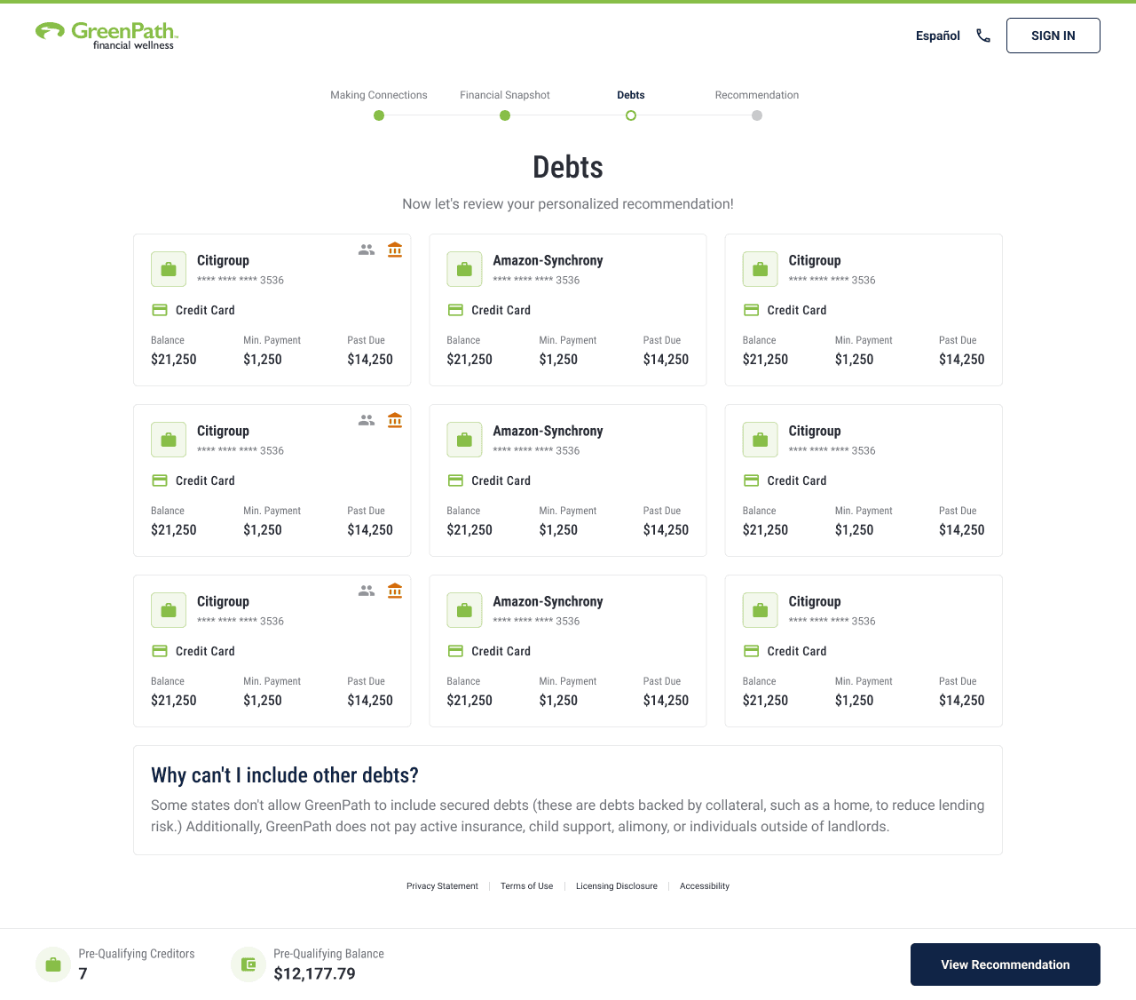 Stakeholder interviews helped us understand what GreenPath needed the redesign to accomplish. After sessions with sponsors, product owners, and business analysts, four goals emerged: